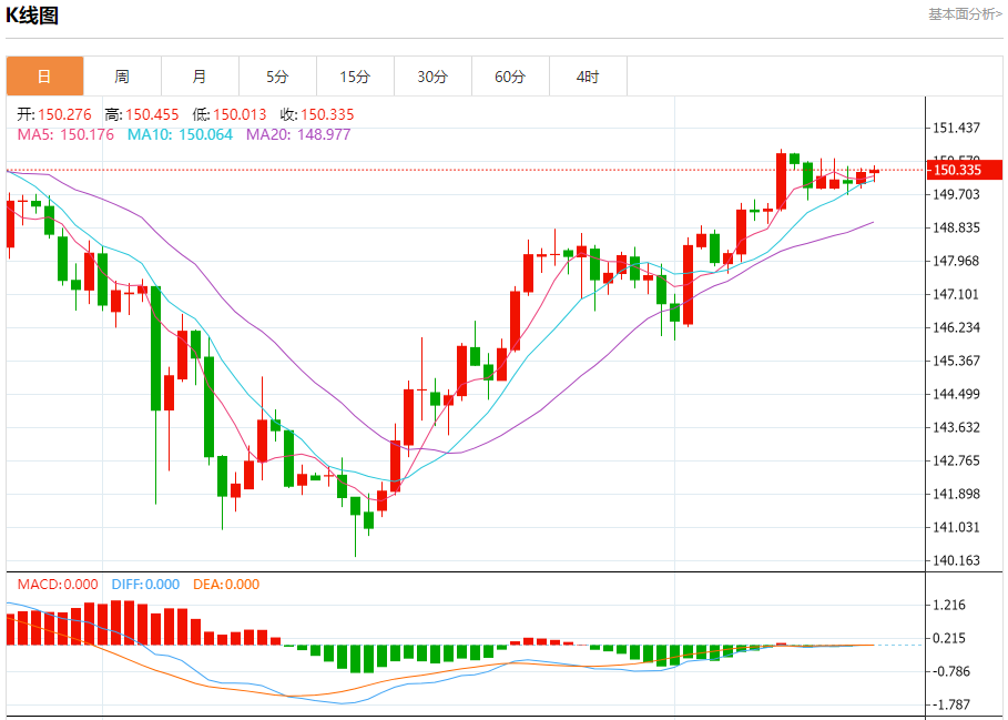 周四纽盘,美元兑日元交投于150.346,涨幅为0.03%。