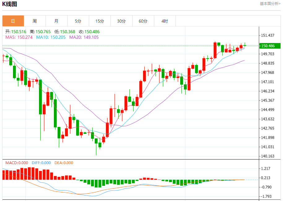 周五纽盘,美元兑日元交投于150.502,跌幅为0.02%。