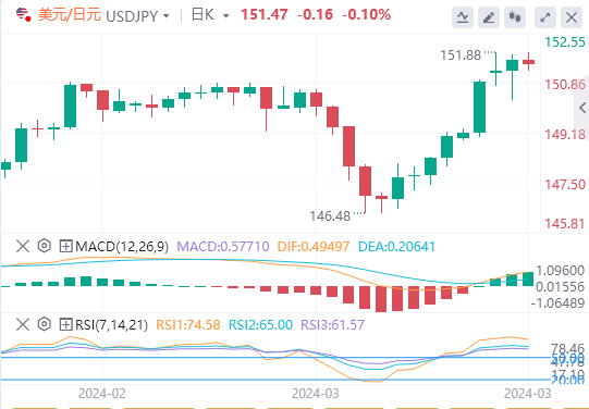 今天的预期交易区间在150.60支撑位和152.00阻力位之间