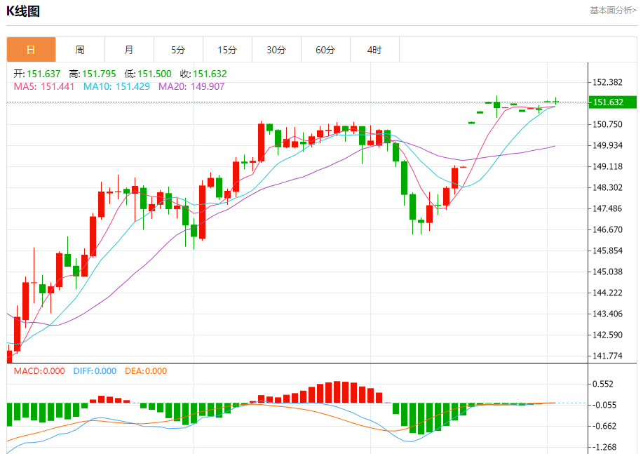 今天的预期交易范围在151.00支撑和152.50阻力之间。