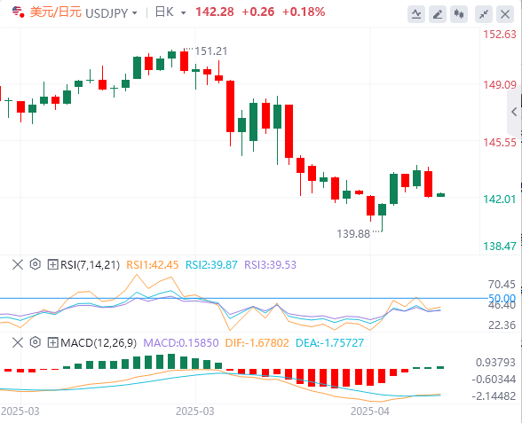从技术上看,美元/日元在142.00附近显示出明显的看跌信号,日内下跌1.14%,接近其日内区间的底部141.98和143.89之间。 相对强弱指数(RSI)为38.71,处于中性,而MACD提供了适度的买入信号,形成了混合但整体谨慎的技术背景。 看跌情绪进一步得到增强,强势振荡器为?3.98,商品通道指数(CCI 20)为?52.62,均保持中性,但倾向于负面。 卖压进一步得到移动平均线的强化:20日简单移动平均线位于144.40,100日简单移动平均线位于151.24,200日简单移动平均线位于150.02——均在当前价格之上,发出下行动能的信号。 短期动态几乎没有缓解,10日指数移动平均线在142.94,10日简单移动平均线在142.37,均构成了即时阻力位。 需要关注的关键阻力位是142.37,其次是142.94和143.18。 要削弱当前的看跌动能,必须在这些障碍之上恢复,但目前风险仍偏向下行。