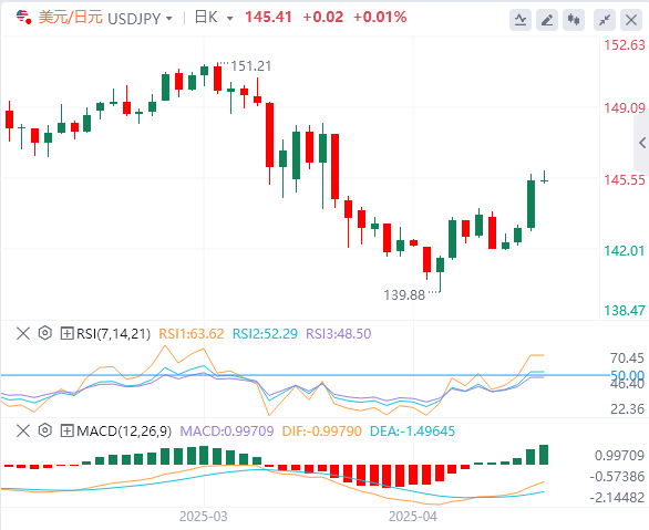 在会后新闻发布会上,日本央行行长植田和男表示,贸易政策的不确定性急剧增加,实现2%通胀目标的时间将有所延迟。这迫使投资者缩减对日本央行在6月或7月下一次加息的押注,并拖累日元在周五连续第四天走低。