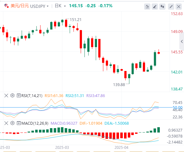 在会后新闻发布会上,日本央行行长植田和男表示,贸易政策的不确定性急剧增加,实现2%通胀目标的时间将有所延迟。这迫使投资者削减对日本央行在6月或7月下一次加息的押注,并将日元兑美元周五拖至三周低点。