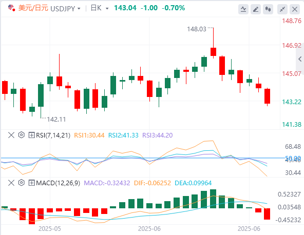 7月1日,美元/日元货币对连续第二天下跌,周二跌至近三周低点,约在143.00附近。此外,基本面背景支持该货币对从148.00(上周一触及的自5月13日以来的最高水平)拒绝回落的前景。