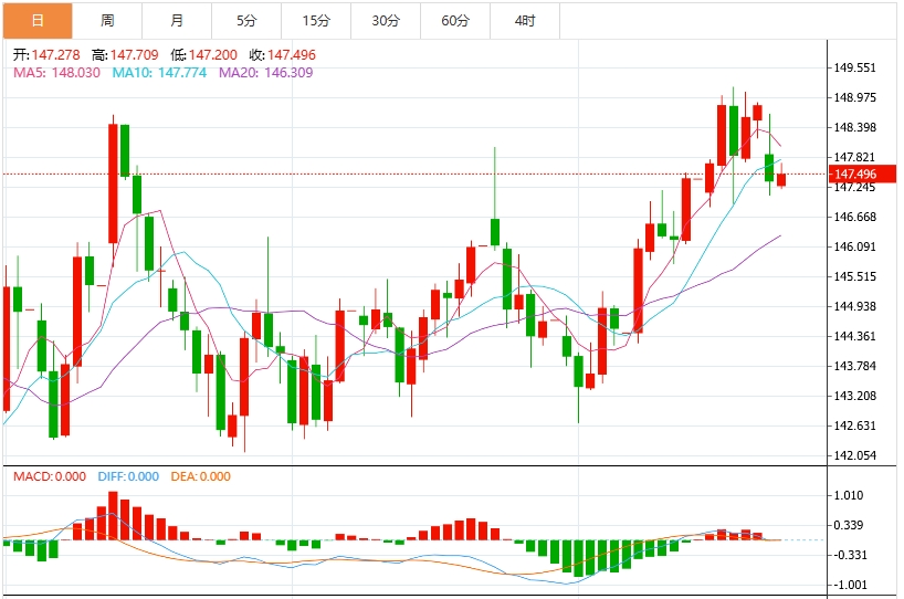 技术上,美元/日元未能重新收复148.65-149.00阻力区间,随后回落走低。价格目前正在测试148支撑位,若跌破该位置,将为下行至146.00打开空间。