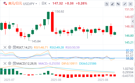 不利的一面是,跌破8月14日低点146.214可能会让空头瞄准关键的145支撑位。如果突破,142.5将是下一个关键支撑位。