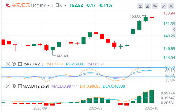 每日相对强弱指数(RSI)仍接近超买区域,阻碍交易员围绕美元/日元货币对进行新的看涨押注。然而,任何后续回调都可能吸引新的买家,并在152.00整数关口附近保持缓冲。随后是隔夜波动低点151.70区域附近,如果突破该区域,可能会引发一些技术性抛售,并将现货价格拖至151.00强劲水平阻力断点。