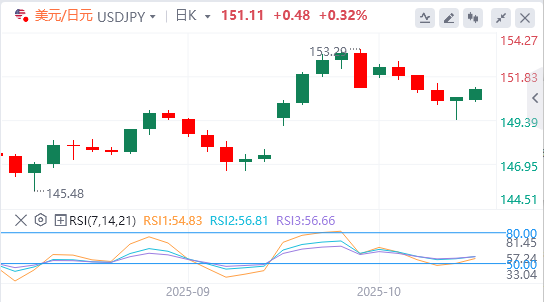 10月20日,周一亚市盘中,美元/日元徘徊在151.11附近。