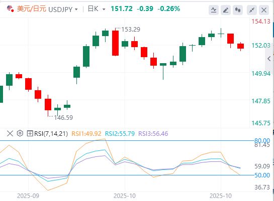 日本政府的干预威胁引发了急剧的回调。交易员现在将短暂地将注意力从中美贸易发展转移到对美联储降息和日本央行加息的预期上升。尽管日本首相高市早苗采取了超宽松的货币政策立场,但关于日本央行加息的猜测仍然存在。美元/日元在高市被任命为日本首相后收复了 153 关口,然后回落。