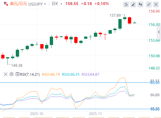 与此同时,日本银行行长上田一雄周五在议会表示,日元走弱可能会推高进口成本和更广泛的价格。此外,日本统计局报告称,通胀在日本日银2%目标以上依然存在,这让人们对近期加息仍有希望。路透社的一项民调显示,微弱多数经济学家预计日本央行将在12月将利率提高至0.75%。
