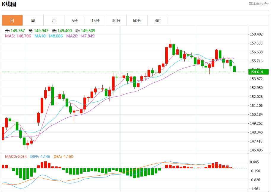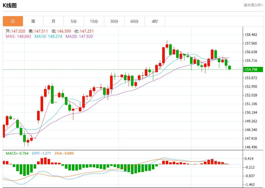 从技术走势来看,美元兑日元的结构正在明显转弱。汇价此前多次在短期均线附近受阻,未能有效站上100小时均线,显示上方抛压较重。随后,价格跌破155.00这一重要心理关口,释放出偏空的技术信号,令短线空头占据主动。