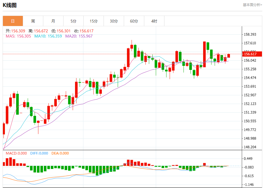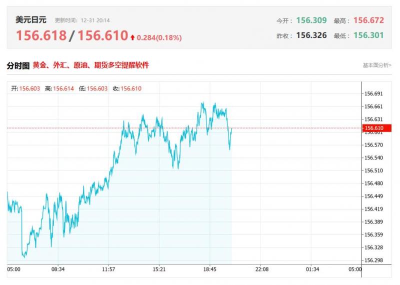 周三纽盘,美元兑日元交投于156.661,涨幅为0.21%。
