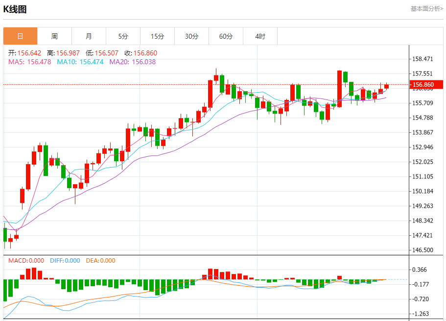 周五纽盘,美元兑日元交投于156.897,涨幅为0.18%。