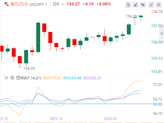从技术角度看,美元兑日元保持稳定上涨趋势,日线图上远高于其关键移动平均线。21天简单移动平均线(SMA)位于156.48附近,作为直接支撑。