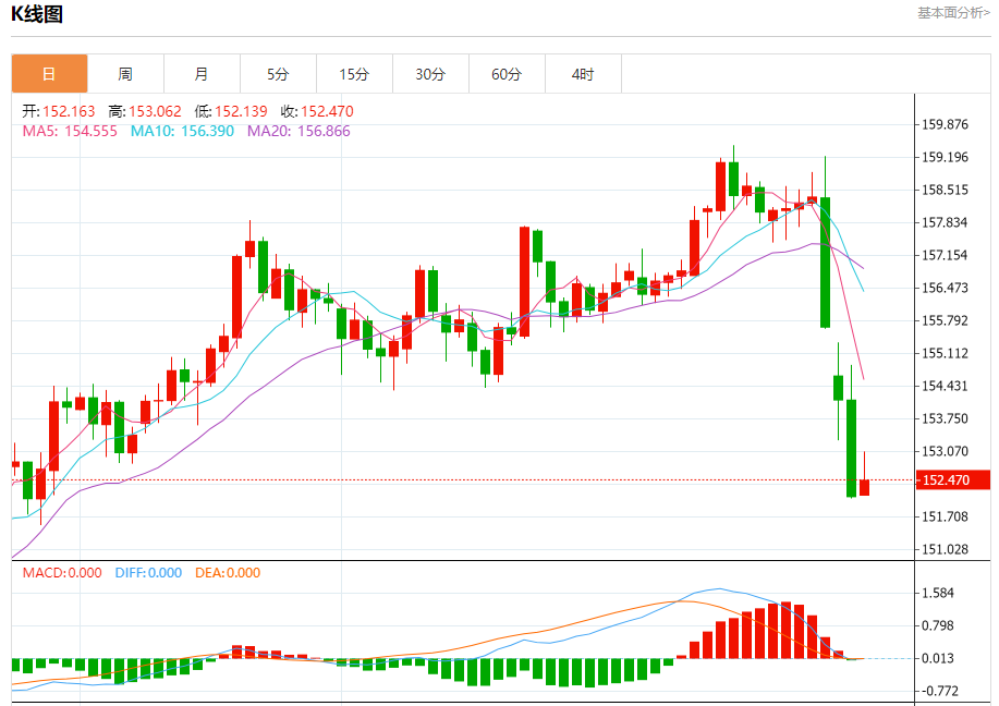 今日周三,截止目前美元兑日元报152.460,上涨0.18%。