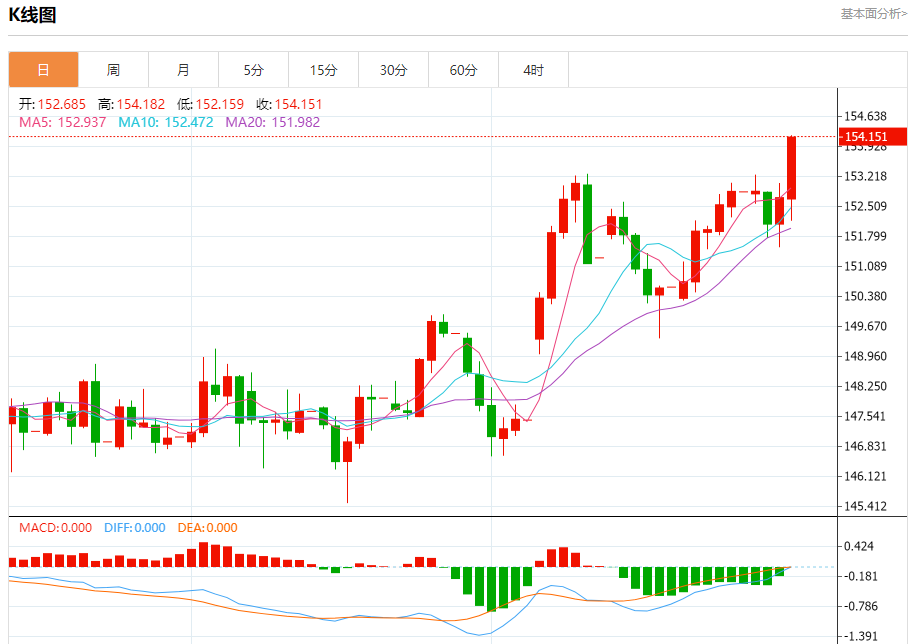 今日周五,截止目前美元兑日元报154.132,上涨0.01%。 日元基本面行情分析 日本央行30日在结束为期两天的货币政策会议后宣布推迟加息,将基准利率维持在约0.5%的水平不变。 尽管会前有预测认为央行可能为抑制超预期通胀加息,但货币政策会议依然以7票赞成2票反对决定维持当前利率,这是日本央行连