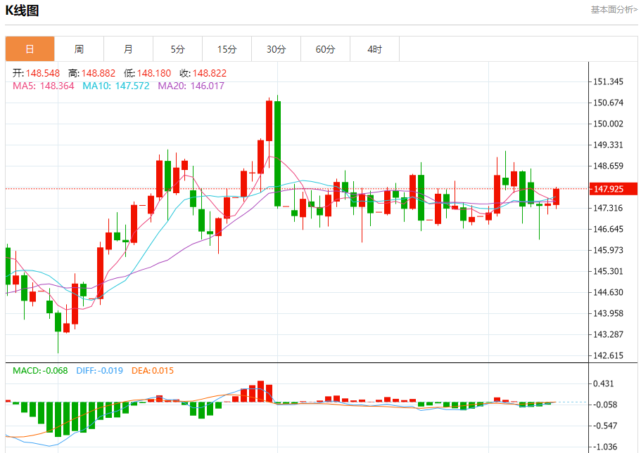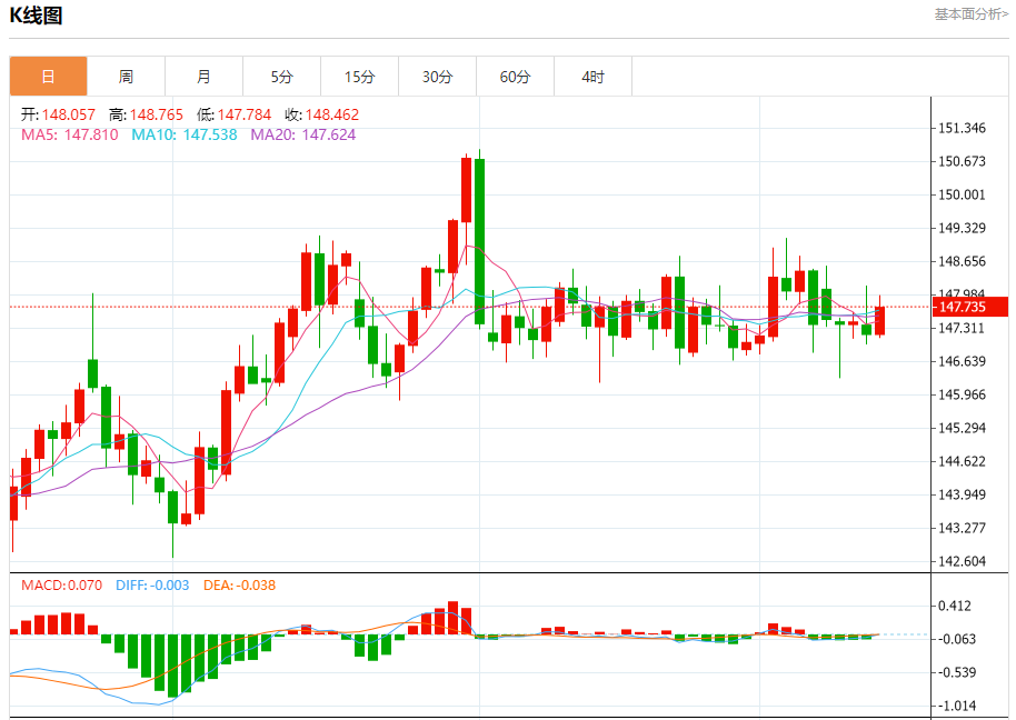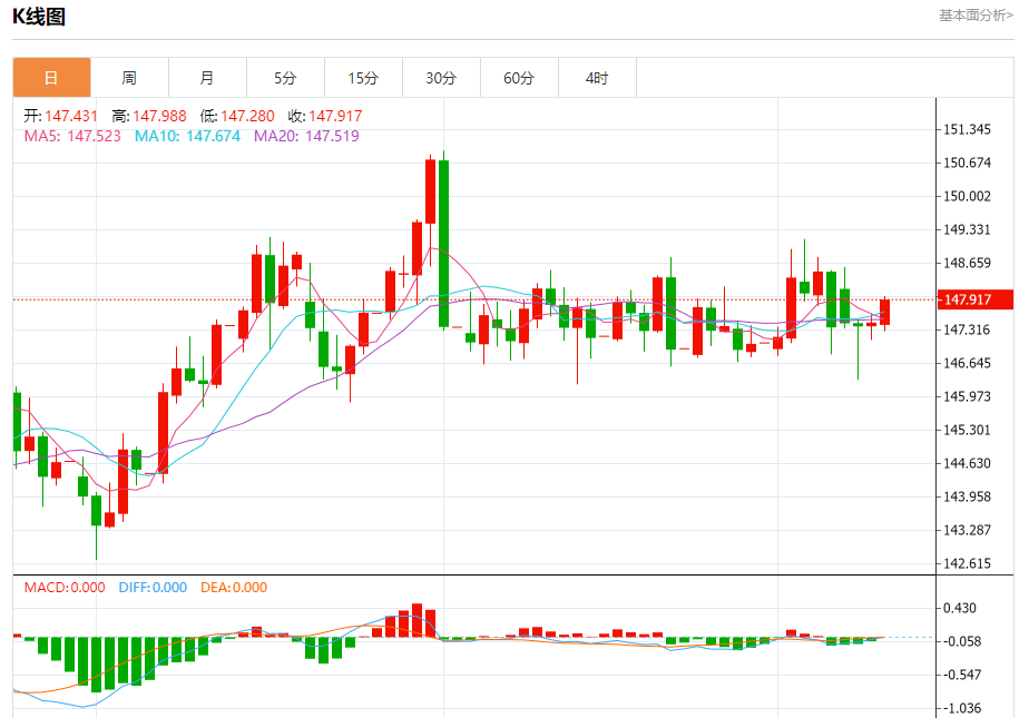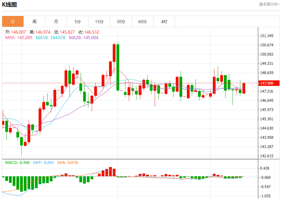 今日周五,截止目前美元兑日元报147.756,上涨0.37%。 日元基本面行情分析 日本前首席外汇官员、曾参与1985年《广场协议》谈判的行天丰雄(ToyooGyotn)表示,日本央行应警惕日元长期疲软导致通胀加速的风险,特别是在日本利率仍处于超低水平的背景下。“日本的利率长期过低,这无可否认地助推了日元走弱