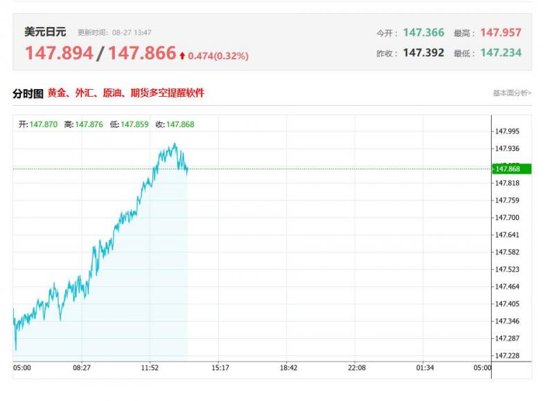 8月28日,周四欧市盘中,美元/日元在前一交易日稳定后贬值,交投于147.30附近。随着日元(JY)在日本央行(BoJ)行长植田和男最近的言论的推动下上涨,该货币对下跌。植田表示,工资上涨正在蔓延到大公司之外,并且由于就业市场收紧,工资上涨可能会继续加速,这提振了市场对未来几个月进一步加息的希望。 日本央行货币