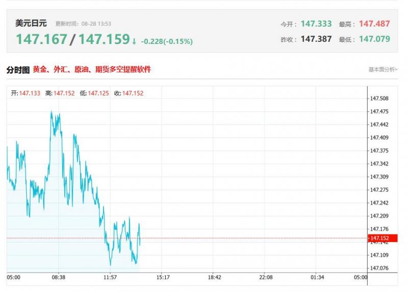 8月28日,美元/日元在周四亚洲早盘时段下跌至147.20附近。美元(UD)兑日元(JY)走弱,因为对美联储(Fd)独立性的担忧持续存在。交易员准备迎接美国第二季度国内生产总值(GD)增长率的第二次估计,随后是每周首次申请失业救济人数和待售房屋销售报告。 由于美国总统唐纳德·特朗普周一试图解雇美联储理事丽莎·库克