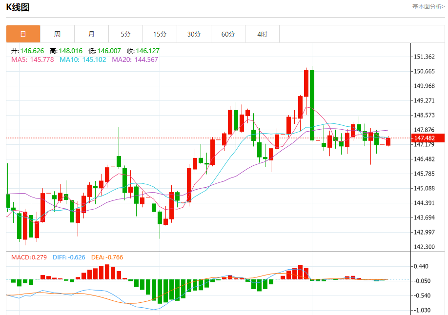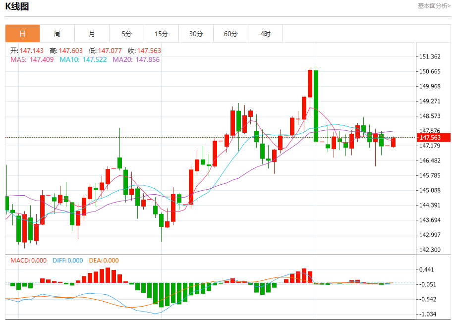 美元兑日元今日汇率最高147.410,最低147.382,涨跌0.212,涨跌幅0.14%。 市场基本面分析 日本央行行长植田和男称,“潜在通胀”(主要关注国内需求和工资的强劲程度)仍低于央行2%的目标,为缓慢加息提供了理由。问题在于,并没有衡量“潜在通胀”的单一指标,这使其成为批评人士的目标。批评人士称,总