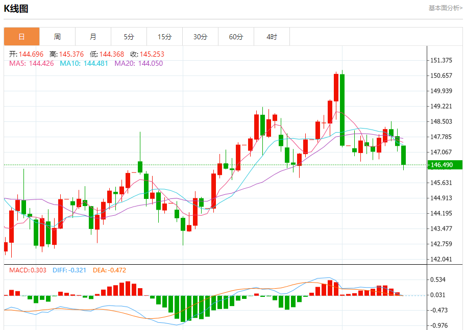 今日周四,截止目前美元兑日元报146.495,下跌0.60%。 日元基本面行情分析 随着对日本经济持续通胀压力的关注不断增长,日本央行内部要求放弃定义模糊的“潜在通胀”指标的呼声正在增强。这反映出部分委员对于当前货币政策沟通方式的不满,并呼吁采取更为鹰派的姿态以应对可能出现的第二轮价格效应。