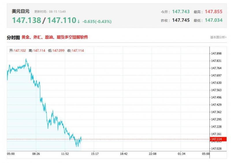 8月15日,周五欧市盘中,日元兑美元普遍走弱,维持强劲的买盘基调,并在周五欧洲时段早盘将美元/日元货币对拖至147.00关口。今天早些时候公布的数据显示,尽管面临美国关税阻力,但日本第二季度经济增长超过预期。这再次证实了日本央行(BoJ)将坚持政策正常化路径的预期,这反过来又为日元提供了良好的提振。 与此同时