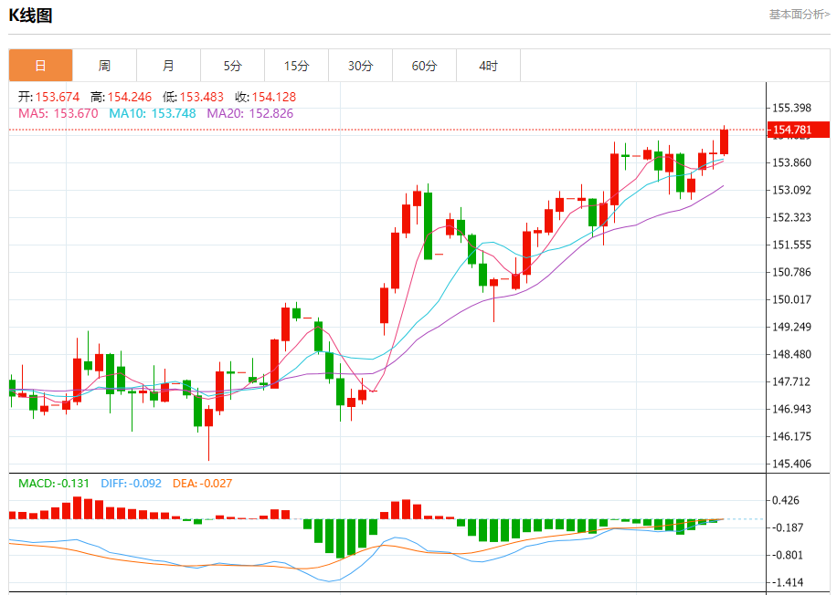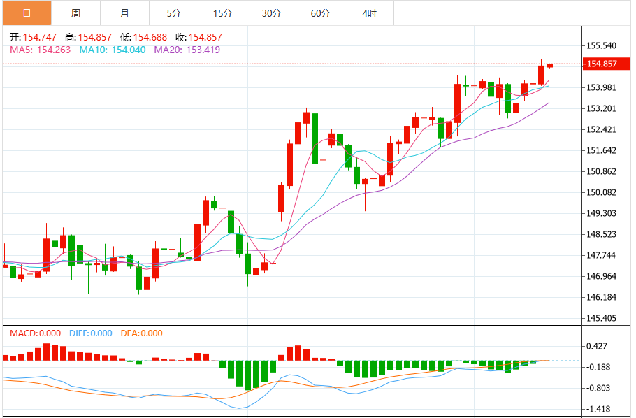 今日周四,截止目前美元兑日元报154.738,下跌0.03%。 日元基本面行情分析 管日本央行(BoJ)行长上田和夫的讲话略显乐观,他表示基础通胀正在逐步加速,正接近央行的2%目标。 然而,市场对于央行何时收紧政策依然存疑,尤其是在首相高市早苗坚持延续“安倍经济学”政策组合、倾向维持低利率的背景