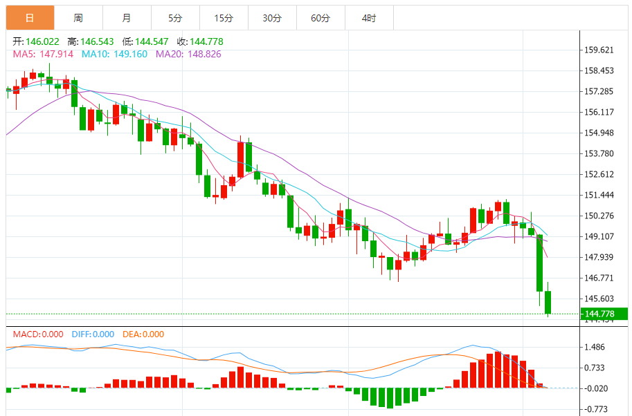 今日周五,截止目前美元兑日元报144.798,下跌0.86%。 日元基本面行情分析 日本央行行长植田和男:美国关税影响企业信心和经济,可能对日本和全球经济造成下行压力。 在决定货币政策时,将密切关注美国关税对日本、海外经济和价格发展的影响。我们将从可持续实现2%通胀目标的角度来引导货币政策。
