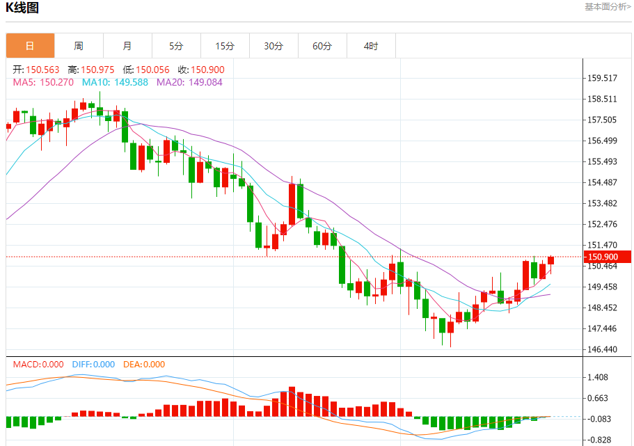 美元兑日元今日汇率最高150.818,最低150.813,涨跌-0.251,涨跌幅-0.17%。 市场基本面分析 日本央行即将于4月30日至5月1日召开关键政策会议,届时将根据最新CI数据更新季度经济增长和通胀预测,这将成为决定后续加息节奏的重要依据。市场对日本央行货币政策走向的预期正日趋明朗,路孚特最新调查显示,超