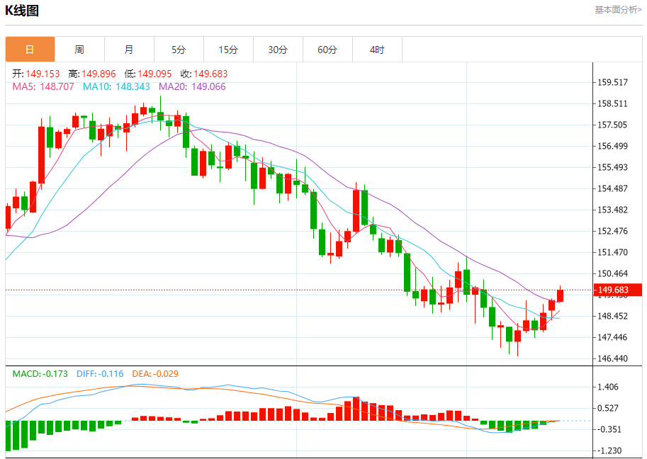 美元兑日元今日汇率最高149.634,最低149.618,涨跌0.453,涨跌幅0.30%。 市场基本面分析 日本央行行长植田和男对消费前景展现出乐观态度,同时重申将缩减央行“过大”的资产负债表,彰显出日本央行仍致力于推动经济摆脱货币刺激政策。植田和男称,随着进口成本驱动的通胀逐步放缓,加之工资稳步上扬,实