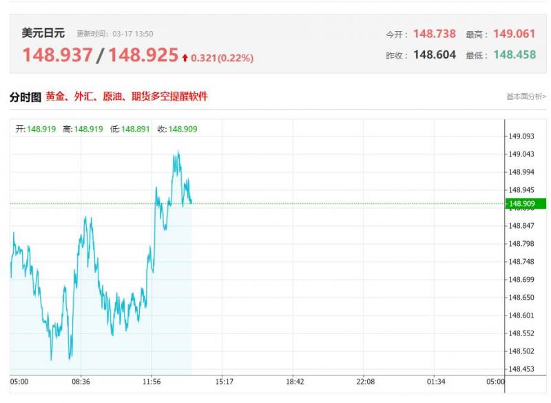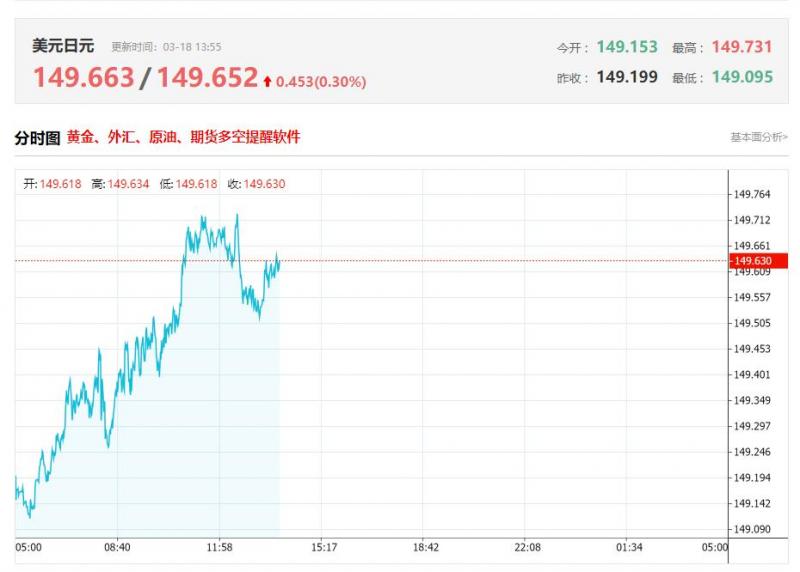 3月18日,周二亚市盘中,日元连续第三天走低,将美元/日元推高至近两周高点,在亚洲时段高于149.00。投资者继续为中国为提振国内消费和家庭收入而推出的最新刺激措施欢呼。在美国总统唐纳德·特朗普和俄罗斯总统弗拉基米尔·普京举行会谈之前,对乌克兰和平协议的希望更加乐观,普京仍然支持乐观的市场情绪。这一点,以