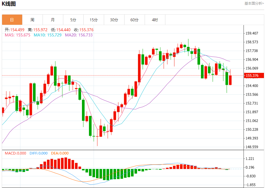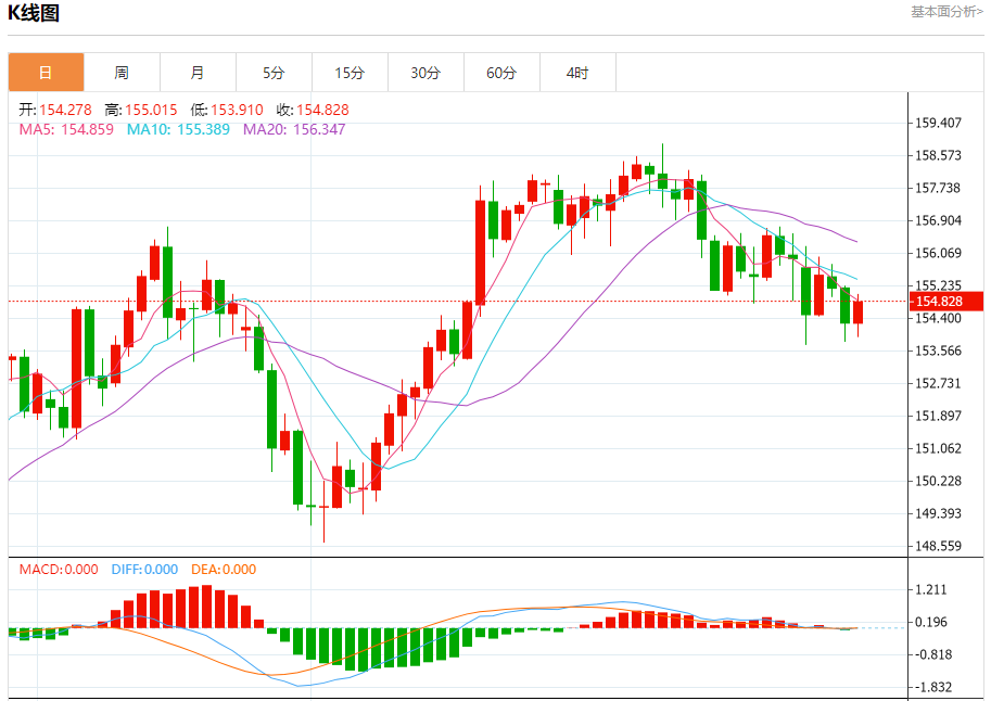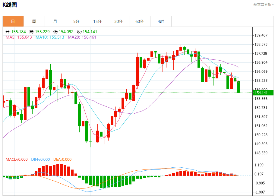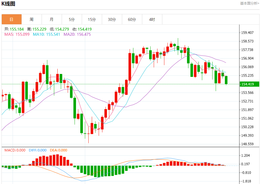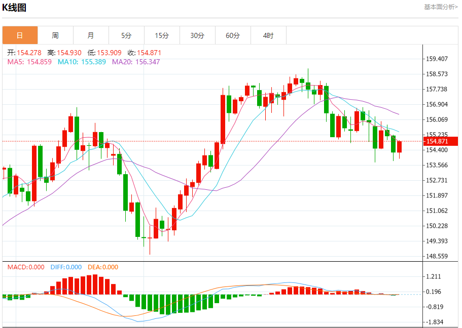 美元兑日元今日汇率最高154.634,最低154.606,涨跌-0.559,涨跌幅-0.36%。 市场基本面分析 美元在美联储按兵不动后持稳,日元上涨,美联储维持利率不变后美元持稳,美联储主席鲍威尔称不急于降息,还表示央行选择暂停脚步以评估通胀前景,日元跑赢其他G-10货币,彭博美元即期汇率指数基本持平,该指数在