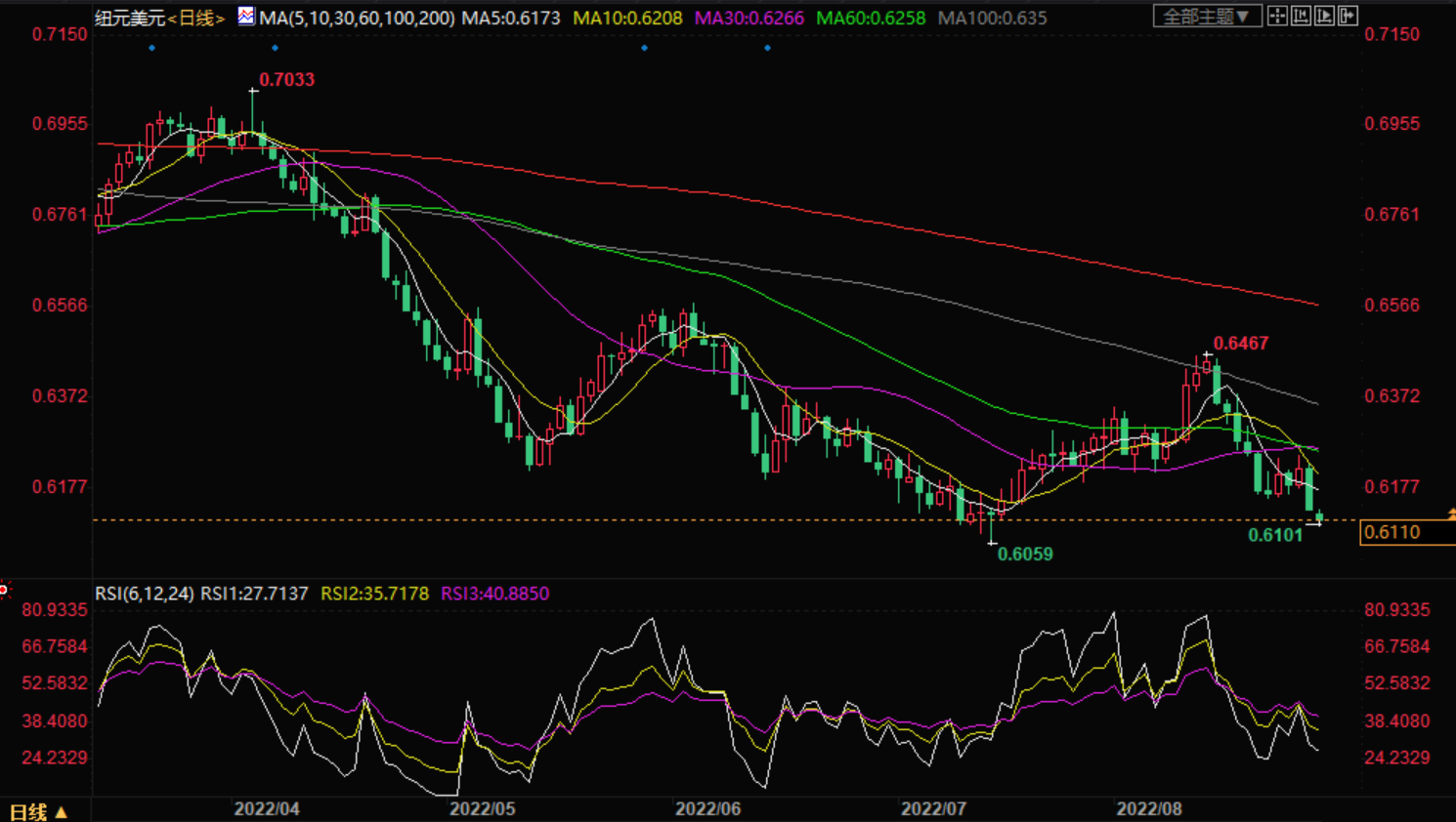 基本面上,美元建立在上周五美联储主席杰罗姆·鲍威尔的鹰派言论所引领的强劲盘中反弹之上,这成为对纽元/美元施加下行压力的关键因素。在杰克逊霍尔研讨会(Jackson Hole Symposium)上的演讲中,他粉碎了鸽派转向的希望,并暗示将在更长时间内保持较高利率,以压低不断飙升的通胀。美国没有发布任何影响市场的主要经济数据,这使得纽元/美元对受制于美元的价格动态。与此同时,美国国债收益率上升和风险基调走弱有利于美元多头。这反过来表明,油价下跌的阻力最小,试图反弹可能被视为卖出的机会。