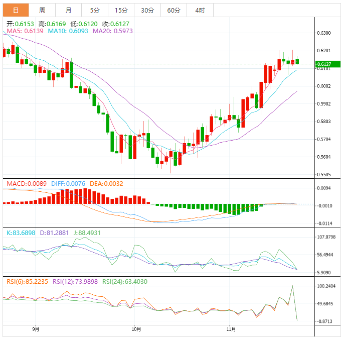 因此,在盘中等待更多预期下跌,注意到突破0.6185将终止建议的负面情景,并引导价格再次反弹。