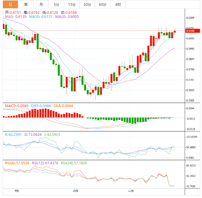 基本面上,由于纽储行行长阿德里安·奥尔最新评论令纽元多头失去动能,纽元/美元在周三早些时候自0.6200-0.6166附近的盘中高点回撤。继新西兰储备银行(RBNZ)上调官方现金利率(OCR) 75个基点后,纽元兑美元在0.6130-0.6178区间剧烈波动。这一次,新西兰央行放弃了50个基点的加息路径,这次加息幅度要大得多。利率已上调至4.25%。新西兰储备银行这一加息决定符合市场预期。