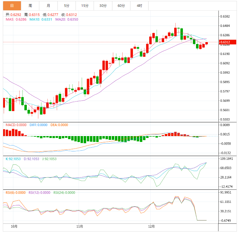 头肩形态的负面影响仍然活跃,除非突破0.6335并守在其上方,否则在接下来的一段时间内将继续显示看跌趋势。