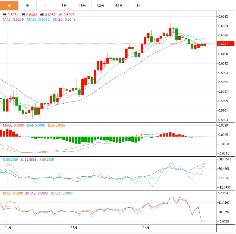 技术面上,纽元兑美元继续在0.6275附近波动,等待新的负面动机推动价格恢复修正看跌趋势,下一站目标为0.6130。