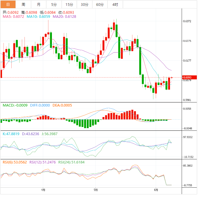 Òò´Ë£¬½¨ÒéÔÚ½ÓÏÂÀ´µÄ¼¸¸ö½»Ò×ÈÕÀͨ¹ýÒÆ¶¯µ½EMA50Ö®ÉÏÀ´Ö§³Ö»ý¼«µÄ½»Ò×£¬¿¼Âǵ½Í»ÆÆ0.6020½«×èÖ¹Ô¤ÆÚµÄÉÏÕÇ£¬²¢Íƶ¯¼Û¸ñÔٴλָ´¿´µøÇ÷ÊÆ¡£