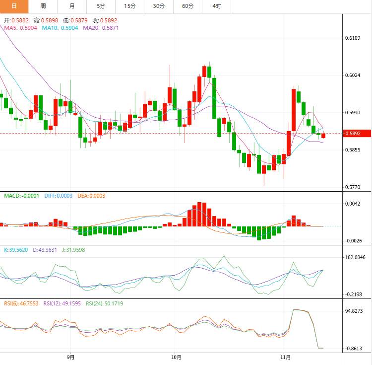 ¼¼ÊõÃæÉÏ£¬Å¦Ôª¶ÒÃÀÔªÔÚ0.5900ÒÔϽáË㣬µÈ´ý»Ö¸´¿´µø²¨£¬¸Ã²¨µÄÄ¿±êÊÇ0.5850£¬½ÓÏÂÀ´µÄÖ÷ÒªÕ¾µãÊÇ0.5800¡£