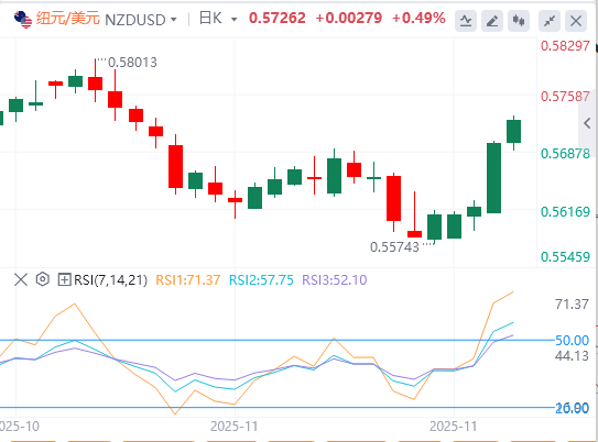 反过来,若在该障碍处被拒绝,则将盘中反弹受限,关注点重新回到前述汇合支撑,即0.5700整数以下。若能明显跌破后者,将表明积极势头已失去动力,使纽元/美元汇率面临加速向0.5625区间的修正性下跌,最终跌破0.5600区间的风险。