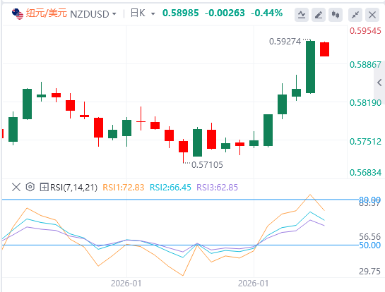 新西兰统计局报告称,第四季度消费者年度通胀加速至3.1%,高于央行的目标区间。火热的通胀数据再次确认了新西兰储备银行(RBNZ)今年晚些时候可能加息的预期。除此之外,股市整体积极的基调应成为风险敏感的新西兰人的顺风,限制纽元/美元汇率的下行空间。