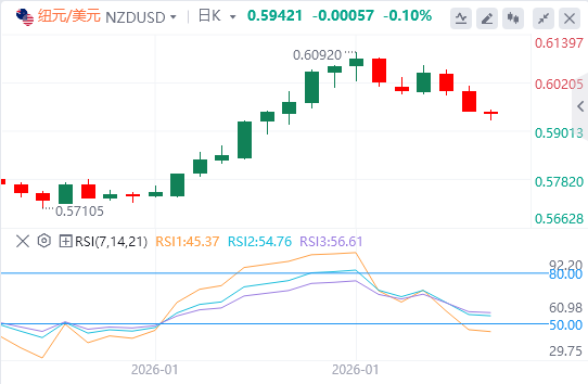 该报告促使市场将新西兰储备银行(RBNZ)进一步加息的预期推迟到2026年晚些时候,这可能会削弱新西兰兑美元。掉期市场现在预计,到五月政策会议前降息的概率超过60%。