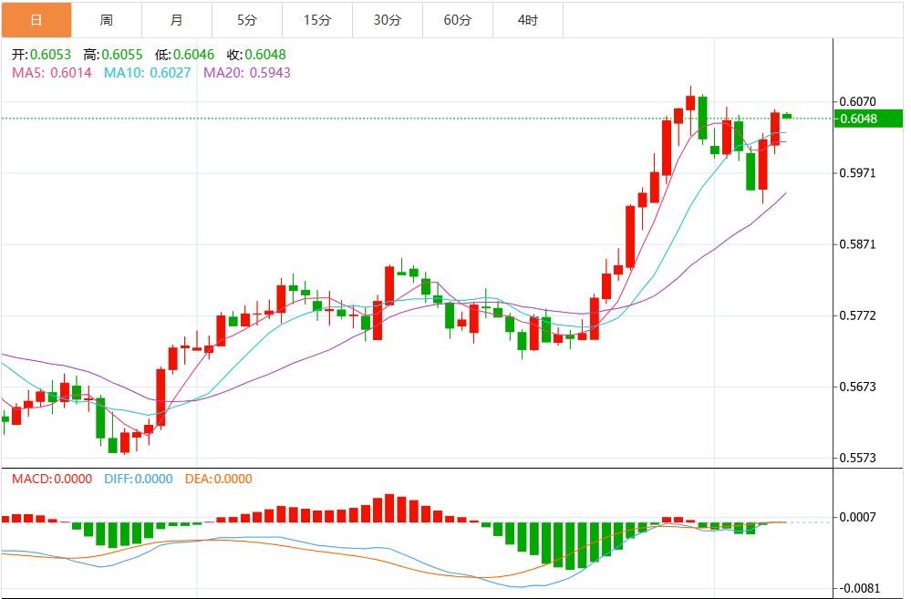 周二亚盘,纽元/美元徘徊于0.6048附近,日内下跌0.11%。纽元/美元连续第二个交易日录得稳健涨幅,摆脱了看跌下行趋势。许多看跌逆风可能会阻碍纽元的看涨动能。