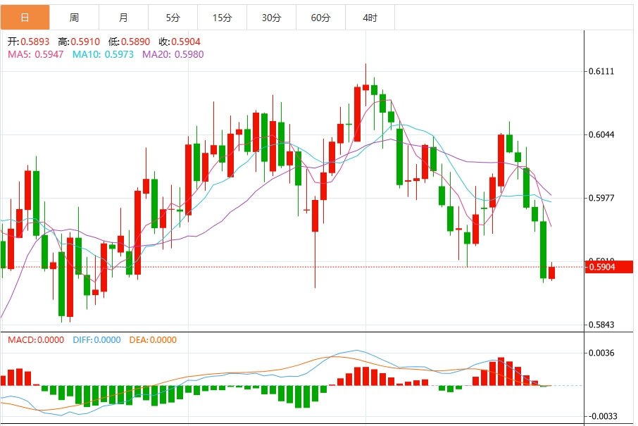 7月31日,周四欧市盘中,纽元/美元获得强劲的积极牵引力,目前似乎已经结束了连续五天的下跌,降至0.5900以下水平,或超过前一天触及的一个月低点。盘中上涨将现货价格在最后一小时推高至0.5925-0.5930区域,并受到美元(UD)走软的支撑。 美元指数从周三因美联储(Fd)鹰派基调而触及的两个月高点小幅回落。事实上,美