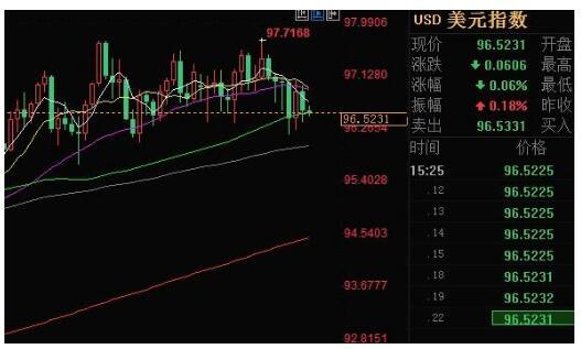 汇通财经易汇通软件显示,北京时间12月25日16:46,美元指数报96.61/62。
