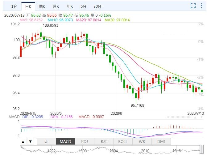 周一亚市盘中,美元指数维持跌势,目前位于96.50下方。