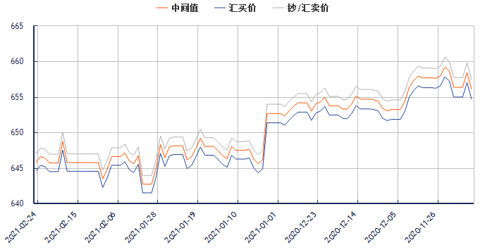 外汇网提供今日美元兑换人民币汇率最新中间价(2021年2月24日):