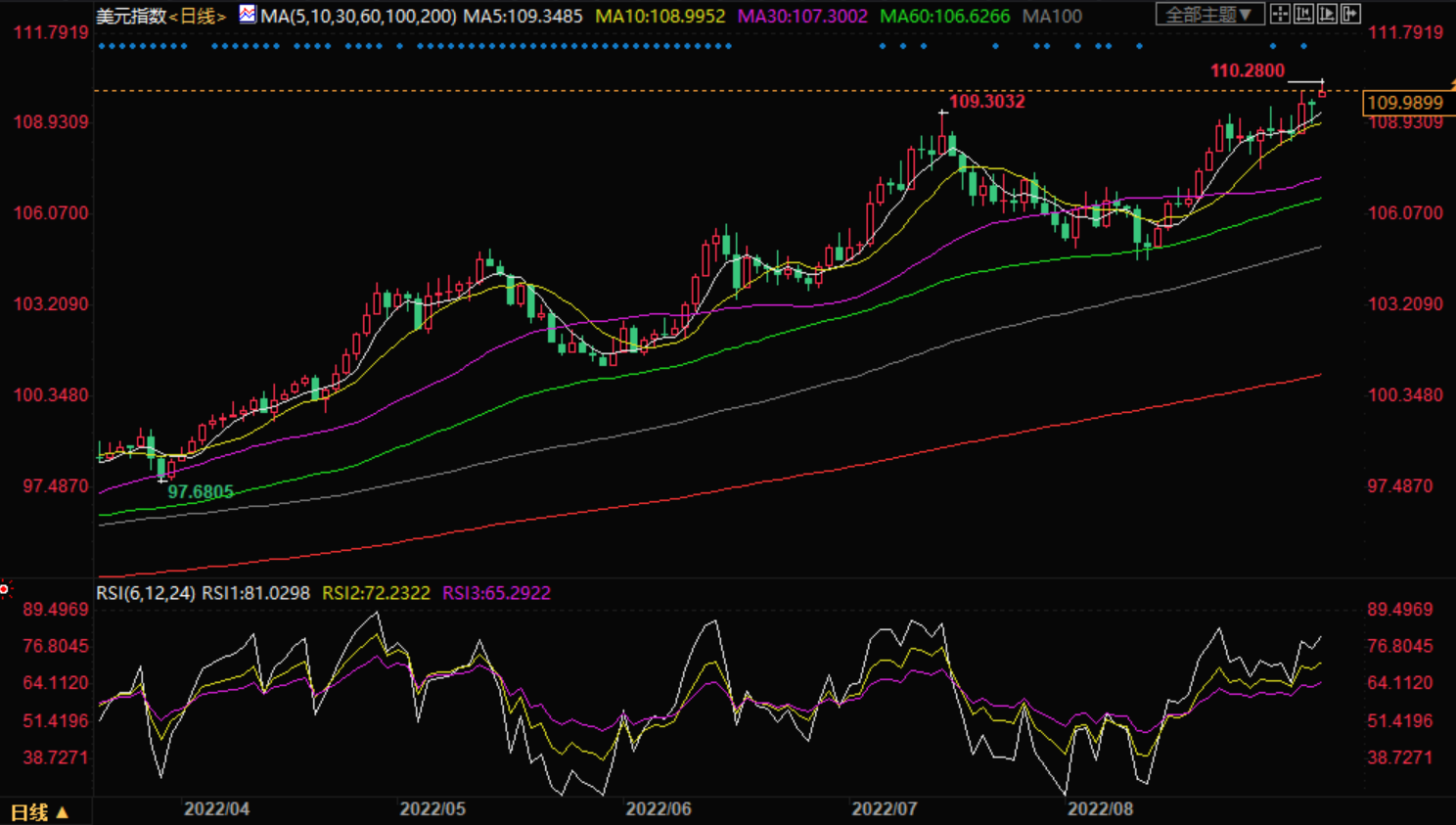 由于美国劳动节假期,美国市场没有任何活动,周一没有任何计划。美元指数在110.00区域上方的20年高位附近维持看涨前景。