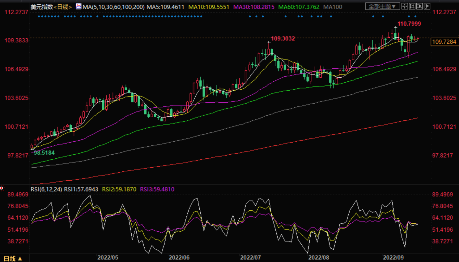 根据芝加哥商品交易所的美联储观察工具,下周联邦公开市场委员会(FOMC)会议期间,美联储将分别加息0.75%和1.0%。但需要注意的是,美国10年期国债收益率在前一日上涨1.38%后,今日下跌1.2个基点至3.447%,这反过来也考验了近期美元指数的多头。