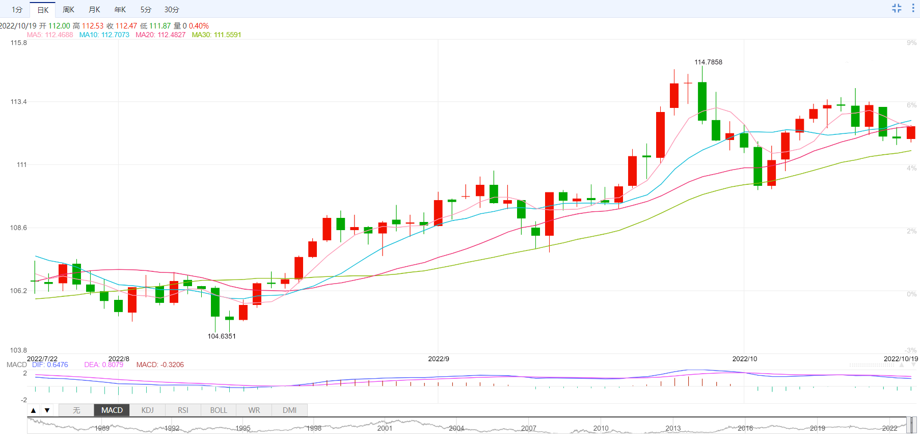 现在,美元指数在112.26点上涨了0.24%,下一个障碍是113.88(10月13日的月最高价),然后是114.76(2022年9月28日的最高价),然后是115.32(2002年5月的最高价)。